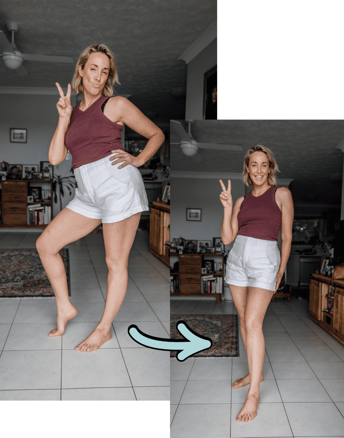 That’s where I come in. I teach everyday women how to move past the stiff, outdated poses and step into natural, confident stances that feel good and look even better. With my guides and coaching, you’ll learn how to: