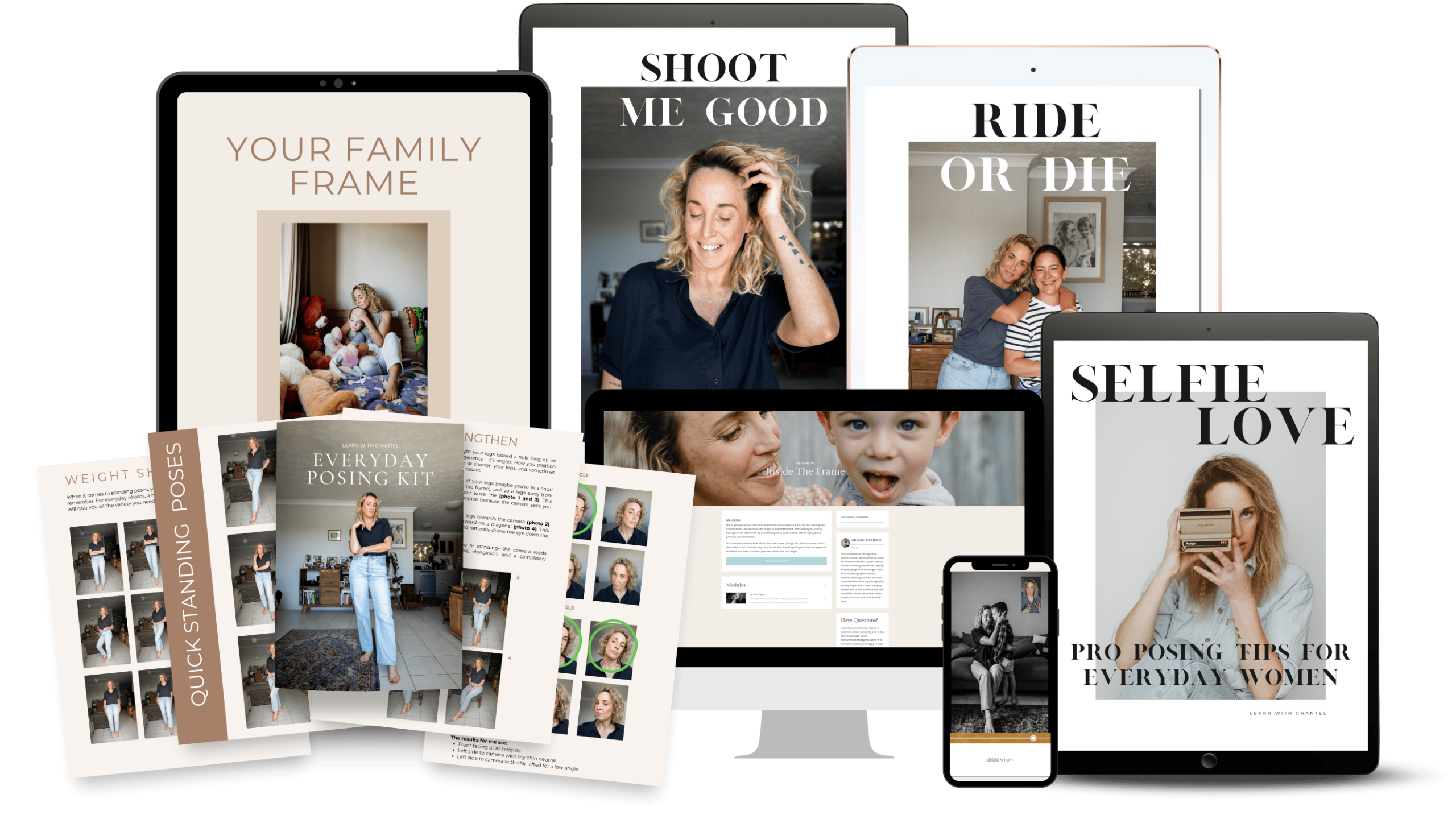Every single posing guide and video bundled up so you will nail the photos you're in AND guarantee that good photos will be taking OF you (even by your husband).